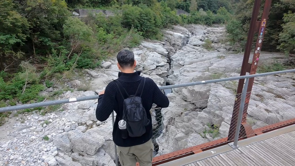 On our drive back to Locarno, as we continued our journey over the Gotthard Pass toward Suhr, we stumbled upon a hidden gorge in Valle Maggia that we had missed on our way to Cascata di Foroglio. Our curiosity piqued, we parked the car to explore it up close. It was truly a visual spectacle, and I was mesmerized by how nature could carve such a stunning gorge over thousands, if not millions, of years. The gorge, known as Orrido di Ponte Brolla, turned out to be the highlight of our visit to Valle Maggia. It offered a distinctly different experience of Switzerland, shedding the classic Heidi scenery for something more raw and untouched.
