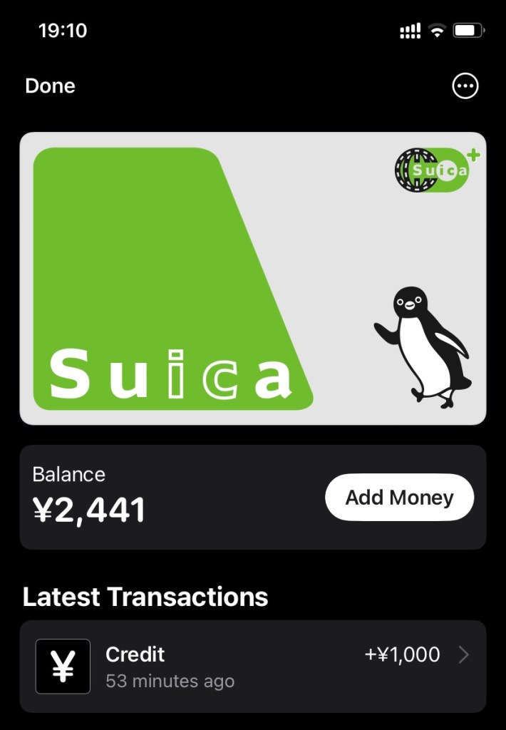 - Once set up, you can recharge the Suica balance directly in Wallet with your linked credit card.
