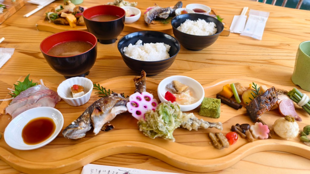 Today, my cousin and her partner joined me and Hiromi for a delightful adventure at a hidden gem in Tsukechi Town โ the beautiful Iwana No Sato Hazama. This enchanting restaurant is nestled in a landscape known for its pristine, clear blue and green waters, breathtaking gorges, and cascading waterfalls. If you’re seeking a tranquil getaway, this is the place to be!